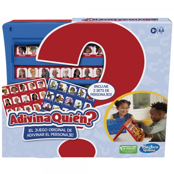 Vuelve a experimentar las memorias de tu niñez con el clásico juego Adivina Quién? y presenta esta edición del juego original de adivinar el personaje a tus hijos y nietos. Con el juego de mesa Adivina Quién?, cada jugador elige una tarjeta de Personaje misterioso y, haciendo preguntas con respuestas de «sí» o «no», intenta adivinar el personaje misterioso de su oponente. El juego viene con 2 hojas doble faz de personajes, incluyendo un lado con superhéroes. Las hojas de personajes se introducen con facilidad en los marcos, lo que facilita la preparación. El práctico estuche plegable permite llevar el juego a todas partes. El juego Adivina quién? para 2 jugadores es una fantástica actividad para niños y niñas a partir de 6 años.