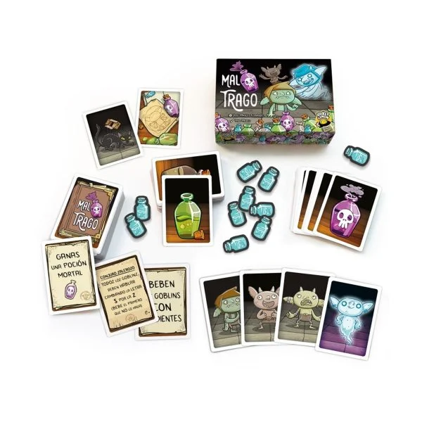 Mal Trago es el *party game* ideal para grupos de 4 a 10 jugadores, garantizando 15 minutos de risas y diversión mientras los goblins intentan sobrevivir a pociones inesperadas. Este juego compacto y dinámico está diseñado para animar cualquier reunión social, ofreciendo una experiencia memorable para mayores de 8 años. Adquiera Mal Trago para incorporar fácilmente un entretenimiento vibrante y lleno de sorpresas a sus eventos.