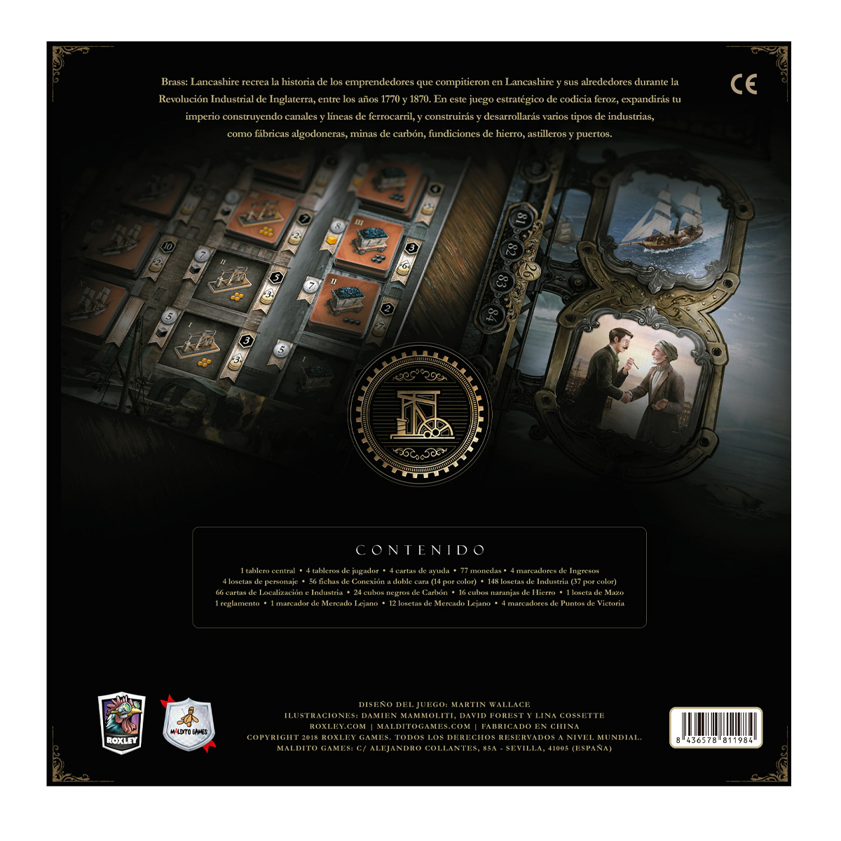 Brass: Lancashire, publicado por primera vez como Brass, es un juego de estrategia económica que cuenta la historia de empresarios algodoneros en competencia en Lancashire durante la revolución industrial. Debe desarrollar, construir y establecer sus industrias y su red para poder capitalizar la demanda de hierro, carbón y algodón. El juego se juega en dos mitades: la fase del canal y la fase del carril. Para ganar el juego, obtenga la mayor cantidad de puntos de victoria (PV), que se cuentan al final de cada mitad. Los PV se obtienen de sus canales, rieles y mosaicos industriales establecidos (volteados). En cada ronda, los jugadores se turnan de acuerdo con el registro de orden de turno y reciben dos acciones para realizar cualquiera de las siguientes acciones: