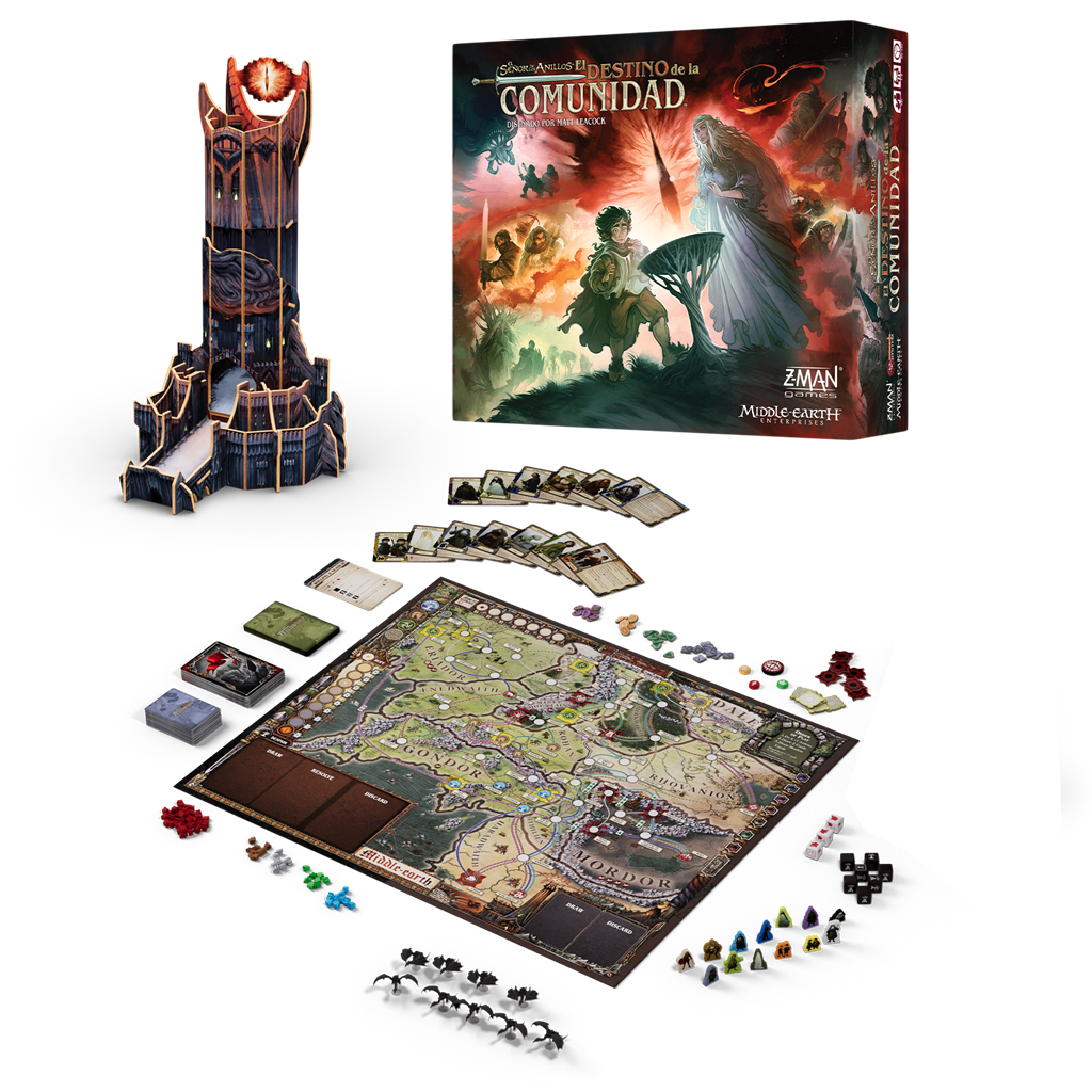 El Destino de la Comunidad es un juego cooperativo para entre 1 y 5 participantes en el que cada cual controla a 2 personajes. Estos aportarán sus habilidades únicas para proteger a Frodo, luchar contra sus adversarios en las plazas clave de la guerra y eludir el escrutinio de los amenazadores Nazgûl y el Ojo de Sauron.