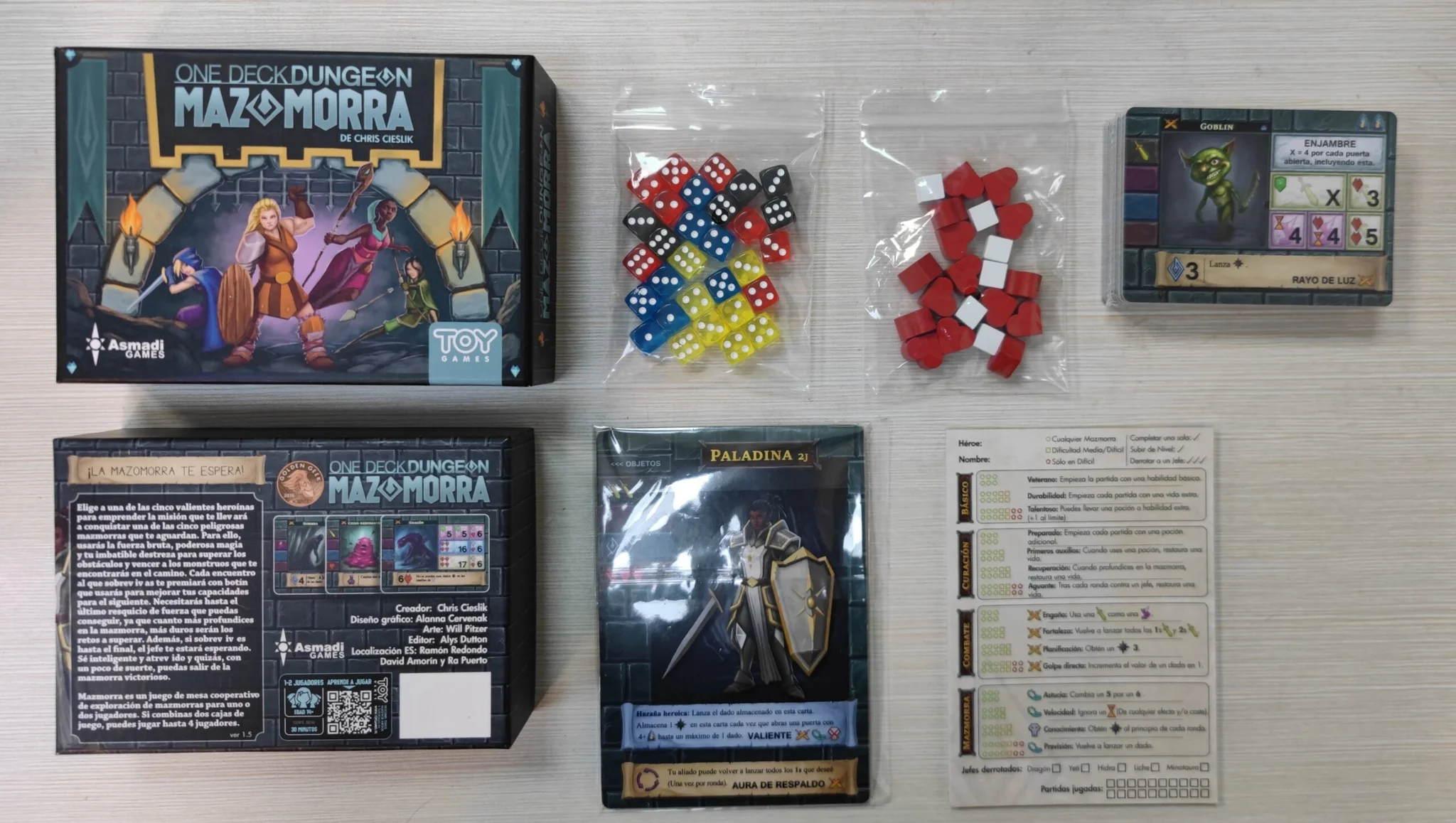 One Deck Dungeon, conocido en español como Mazomorra, es un juego de exploración y combate donde 1 o 2 jugadores interpretan heroínas que se adentran en una mazmorra repleta de trampas, monstruos y desafíos. Usando dados y habilidades especiales, deberán superar los encuentros para fortalecerse y enfrentar al jefe final antes de que se agote el tiempo.