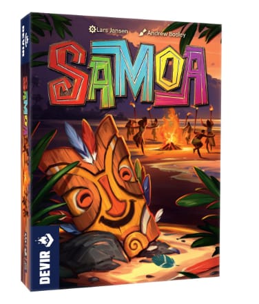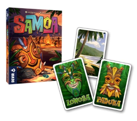 Samoa es uno de los nuevos títulos de la colección pocket de Devir, una línea de juegos de pequeño formato y coste reducido que son ideales para llevar a cualquier parte. ¿Lograrás despistar a tus oponentes y bailar con la máscara más bonita de la playa?
