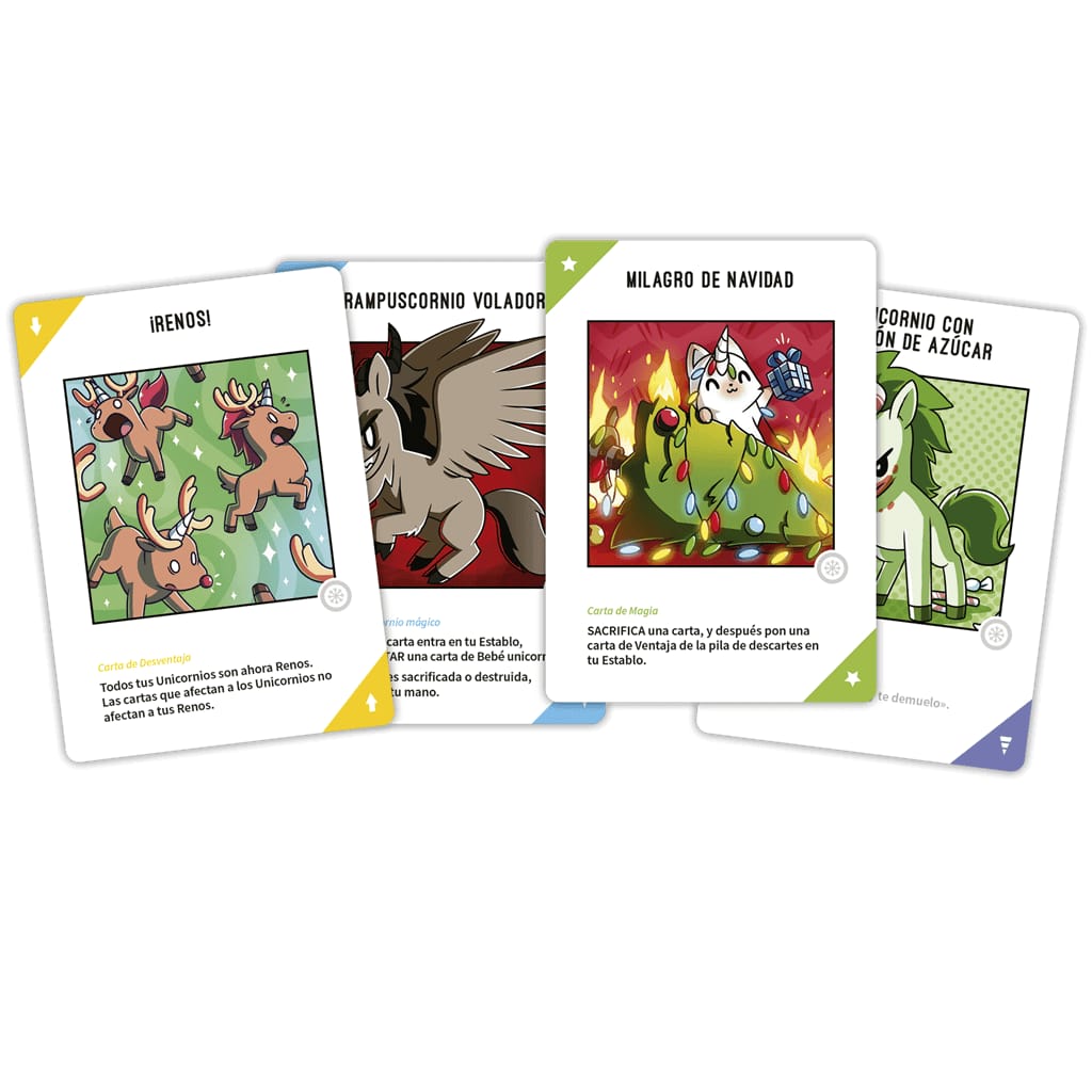 El paquete de expansión Especial de Navidad está diseñado para ser añadido a tu juego de cartas de Unstable Unicorns.