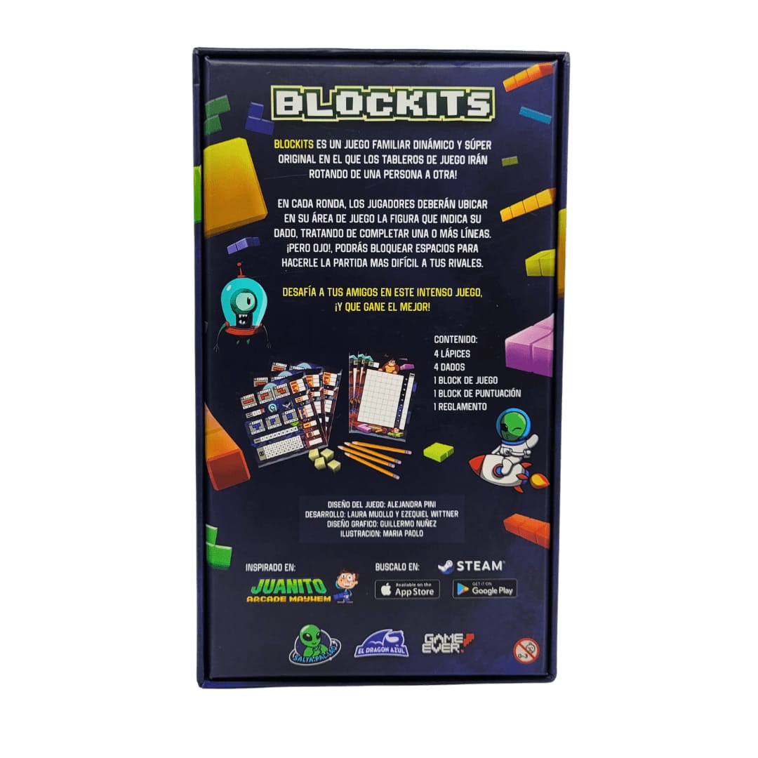 Un juego familiar dinámico y súper original en el que los tableros de juego irán rotando de una persona a otra! En cada ronda, los jugadores deberán ubicar en su área de juego la figura que indica su dado, tratando de completar una o más líneas. ¡Pero ojo!, podrás bloquear espacios para hacerle la partida más difícil a tus rivales.