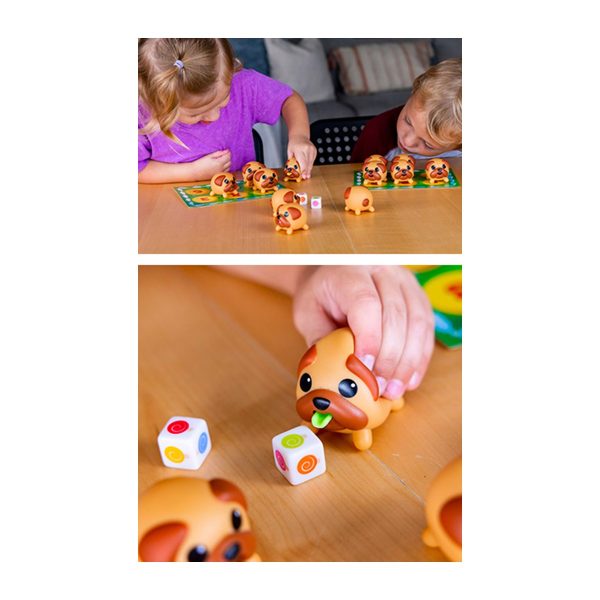 ¡Los perritos se comieron todas las paletas! Por suerte, sus lenguas están teñidas del color de la paleta que comieron. En cada turno, intenta emparejar dos paletas del dado con dos perros blanditos que creas que se las han comido. Cuando aprietes suavemente a los cachorritos, ¡saldrá su lengua! Por muy lindos que sean estos rechonchos perritos, no se saldrán con la suya… El primer jugador que consiga emparejar 6 perritos con los colores de las paletas ¡gana el juego!