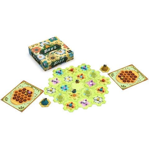 ¡Prepárate para volar cual abeja! Los jugadores tendrán que optimizar sus planes de vuelo y recolectar néctar para su colmena. Pero ten cuidado con las otras abejas, porque competirás contra ellas por varios objetivos comunes y secretos. ¡El desafío de planear tu vuelo y almacenar el néctar hará que te zumbe el cerebro! Contenido: 4 panales 4 abejas con colmena 4 marcadores de jugador 15 piezas de Flor 5 piezas de Hoja 1 pieza Inicial 45 néctares pequeños y 10 néctares grandes 18 cartas de Objetivo 1 apéndice 1 reglamento 1 bloc de puntuación