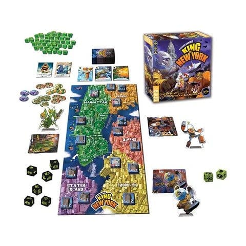 King of New York es un juego independiente de su hermano mayor, King of Tokyo, diseñado para 2 a 6 jugadores que volverán a tomar el papel gigantescas criaturas que han elegido una ciudad para ver cuál de ellas es la mejor, sin importar la destrucción colateral que esta “discusión” pueda provocar. Al igual que en King of Tokyo, el objetivo del juego es conseguir 20 puntos de fama (victoria), en su turno los jugadores lanzan seis dados hasta tres veces y llevan a cabo las acciones según los resultados. Las garras hacen daño a otros jugadores, los corazones sirven para recuperar nuestra salud y la energía nos sirve para conseguir cartas de habilidades especiales, que podremos usar para llevar a cabo efectos únicos. Sin embargo, debido a esta idiosincrasia estadounidense, los jugadores pueden intentar ganar puntos de victoria a través de la fama; convirtiendo a su monstruo en una superestrella. El tablero de King of New York es más grande que el de King of Tokyo, cada monstruo ocupa un distrito de la ciudad mientras intentan alcanzar Manhattan para poder llevar a cabo su “Grand Stand” Los jugadores pueden usar los ataques para moverse por la ciudad, destruir edificios o huir del ejército, ya que a mayor destrucción provocada, más dura será la respuesta de las Fuerzas Armadas de Estados Unidos.