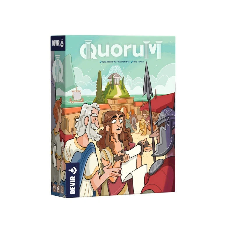 Obra de Raúl Franco y Fran Martínez e ilustrado por Bea Tormo, Quorum permite partidas de 2 a 4 jugadores, a partir de 14 años, de unos 45 minutos de duración. En Quorum, los jugadores se ponen en la piel de los senadores romanos que se reparten el poder en Roma y sus provincias con el fin de conseguir la mayor influencia posible. El objetivo es ser el senador más poderoso e influyente mediante los puntos de victoria, que se obtienen en las distintas áreas de influencia del juego al finalizar las doce rondas que dura la partida.