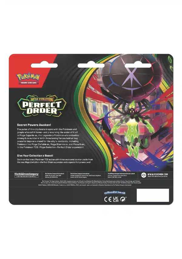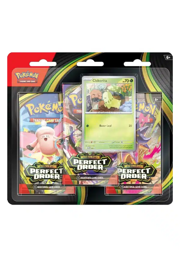 Lleva tu colección al siguiente nivel con este Blister de 3 sobres de Pokémon TCG: Mega Evolution – Perfect Order. Incluye 3 sobres oficiales de la expansión y 1 carta promocional foil exclusiva, ideales tanto para coleccionistas como para jugadores que quieren mejorar su mazo sin invertir en un display completo.