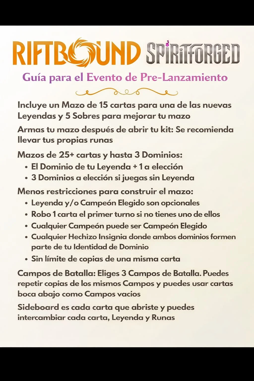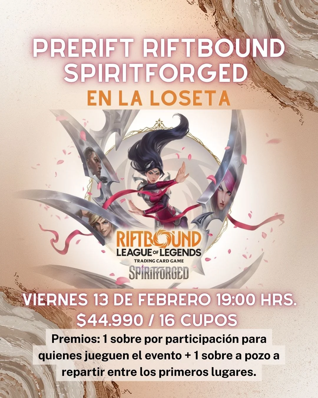 PreRift SpiritForged Viernes 13 de Febrero 19:00 Horas Premios: 1 sobre por participación para quienes jueguen el evento + 1 sobre a pozo a repartir entre los primeros lugares.